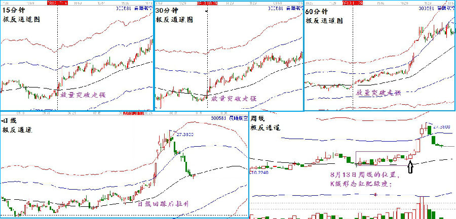 從圖中可以看到8月13日股價的具體波動走勢,其中15分鐘,30分鐘,60分鐘同時放量突破生命線,而日線為回踩生命線后反彈,周線級別生命線附近,K線形態綠肥紅瘦,這就是一個標準的趨勢共振買點,我們可以看到后期該股的走勢,回過頭去看,共振買點就是最佳的介入位置。