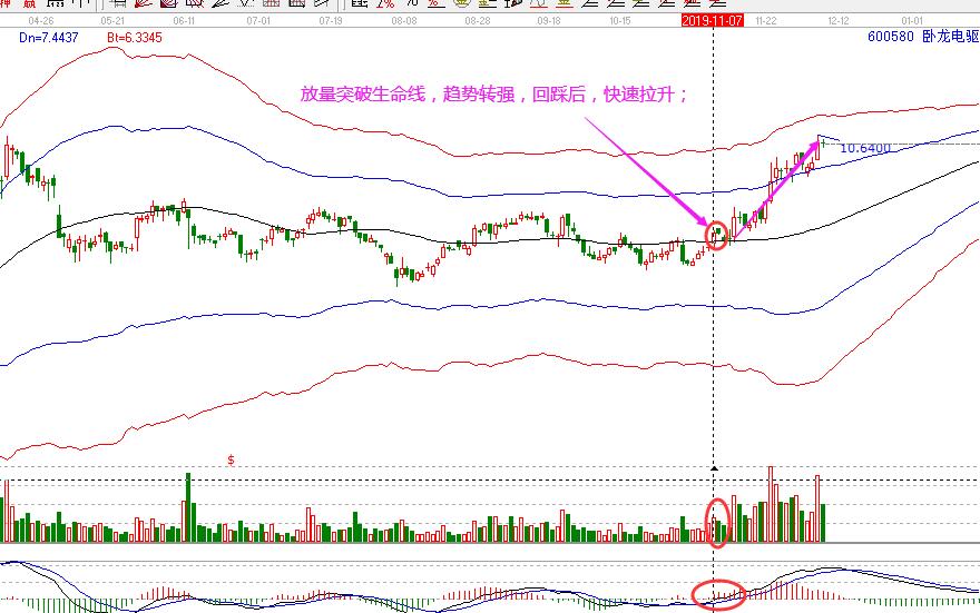 臥龍電驅:11月7日股價放量突破生命線,趨勢從弱勢轉強,回踩生命線后即展開快速的拉升行情。