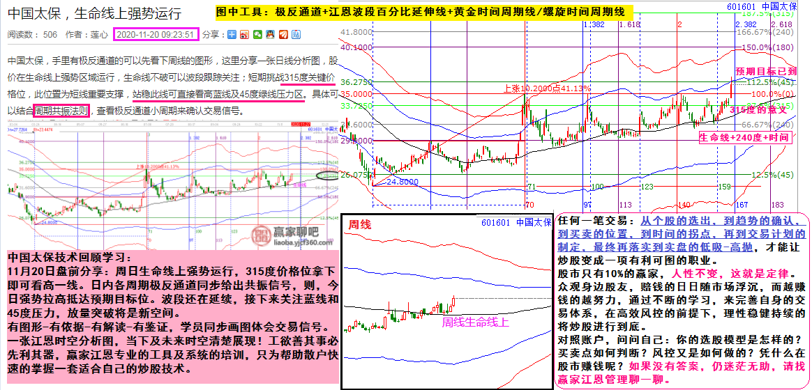 江西銅業,11月17日盤前按照江恩四方法則分享學習,周線4次上攻180度突破在即、日線在藍線構成激進關注點。實則,6個交易日漲幅20%!10萬元*20%=2萬!這就是實戰價值。