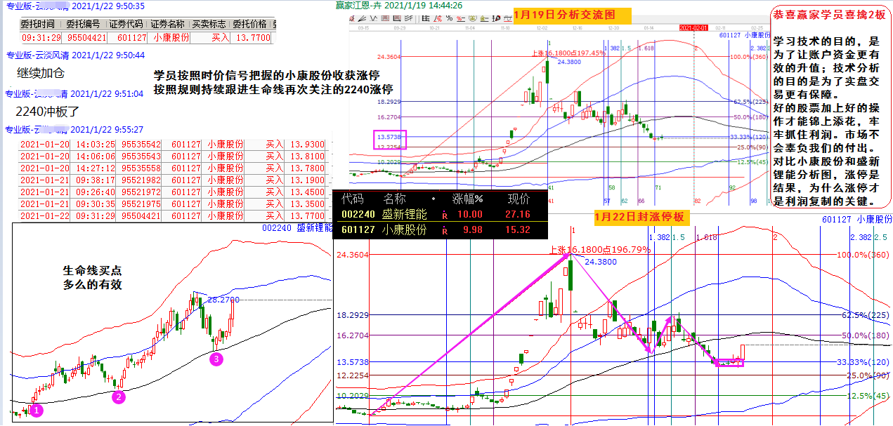 學習技術的目的,是為了讓賬戶更有效的升值;技術分析的目的是為了實盤交易更有保障。好的股票只有加上好的操作,才能錦上添花,牢牢抓住利潤。市場從來不會辜負我們的付出。對照小康股份和盛新鋰能的分析圖,時價信號擒獲小康漲停;2240生命線3次買點很標準!漲停是結果,知道為什么漲停,記下這個因子才是利潤復制的關鍵!你想要的是什么呢?