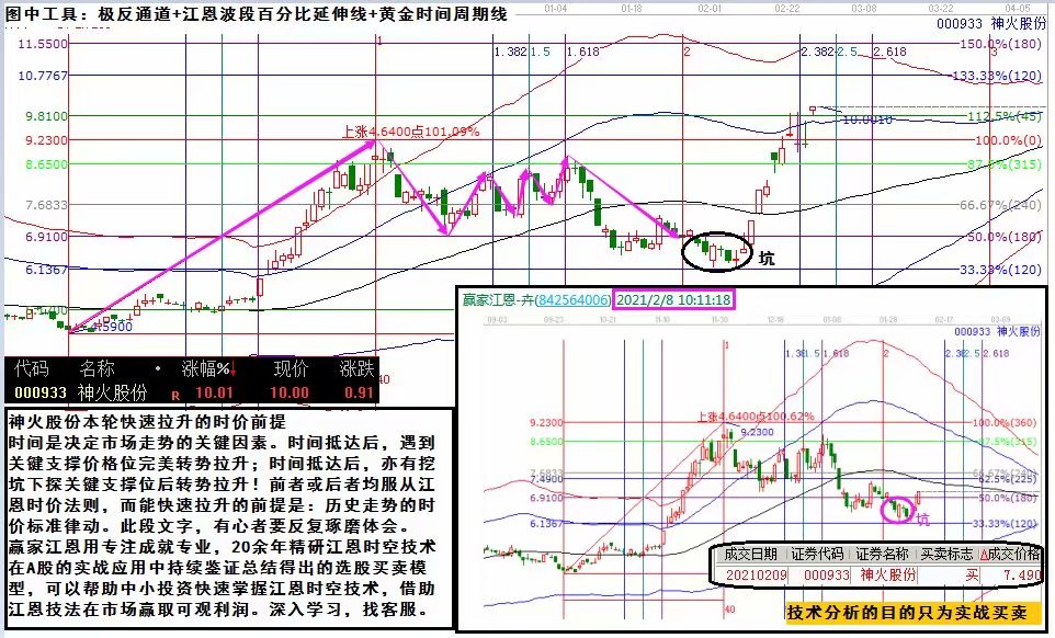 時間是決定市場走勢的關鍵因素。時間抵達后,遇到關鍵支撐價格位完美轉勢拉升;時間抵達后,亦有挖坑下探關鍵支撐位后轉勢拉升!前者或后者均服從江恩時價法則,而能快速拉升的前提是:歷史走勢的時價標準律動。此段文字,有心者要反復琢磨體會。 贏家江恩用專注成就專業,20余年精研江恩時空技術在A股的實戰應用中持續鑒證總結得出的選股買賣模型,可以幫助中小投資快速掌握江恩時空技術,借助江恩技法在市場贏取可觀利潤。