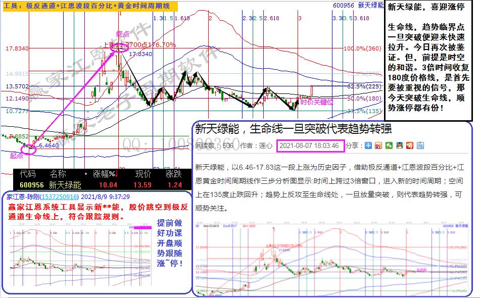 生命線,趨勢臨界點,一旦突破便迎來快速拉升。今日再次被鑒證。但,前提是時空的和諧。3倍時間收復180度價格線,是首先要被重視的信號,那今天突破生命線,順勢漲停都有份!