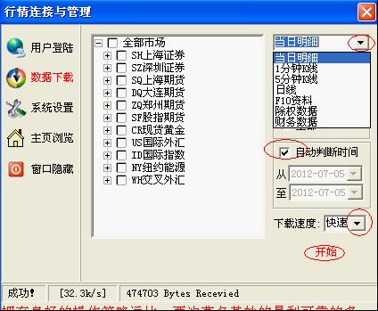1)單擊你要下載的行情品種前面的四方框,會有對勾出現;