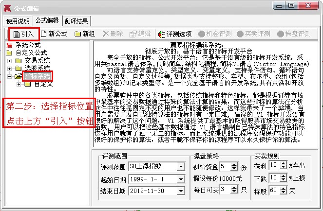 贏家江恩炒股軟件中指標公式導入方法分為三步:第一步是打開公式管理、第二步選擇指標位置點擊上方引入按鈕、第三步是找到需要導入指標文件的位置,點擊打開按鈕,導入成功。相應的圖形展示如下: