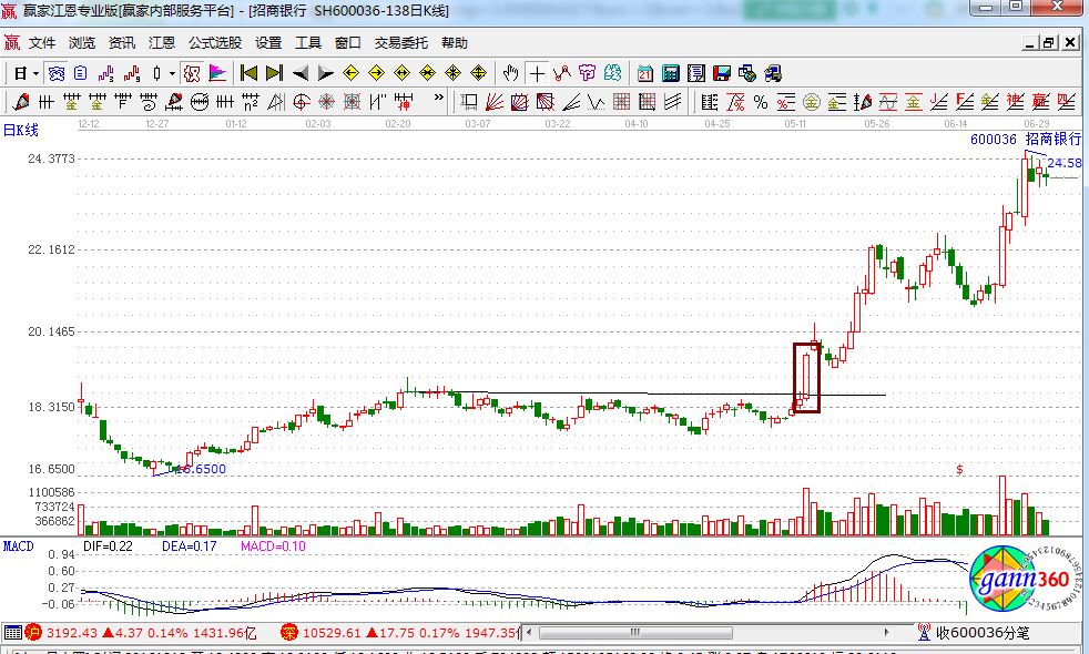 上面是招商銀行從1月份到現在的走勢圖,可以 說該股在幾年上半年,漲幅達到了36.6%。那這里大家就可以思考兩個問題。