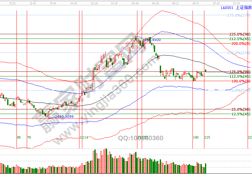 大盤跳空脫離近幾日持續(xù)談到的關(guān)鍵位,盤中最高沖擊至第一目標(biāo)位2950點(diǎn),回顧近期思路,10號早盤收復(fù)2840點(diǎn)按照規(guī)則開倉,2880-2890為持倉關(guān)鍵位,連續(xù)三個交易日收盤關(guān)鍵位,分析的觀點(diǎn)是不破延續(xù)反彈,今天盤中到達(dá)第一目標(biāo)位后,按規(guī)則賣在壓力,5成倉或以上者可以獲利部分籌碼,剩余倉位繼續(xù)持有,未來幾天關(guān)注江恩價格四方形與百分比延伸線2911-2900點(diǎn),此區(qū)間震蕩不破延續(xù)震蕩反彈動作。6月20號盤中壓力是225度2944點(diǎn)、180度2928點(diǎn),盤中支撐是90度2894點(diǎn)。操作策略,指數(shù)處于極反通道弱勢區(qū)域的反彈走勢,繼續(xù)關(guān)注2911-2900區(qū)間不破延續(xù)反彈,整體持倉保持3成左右。