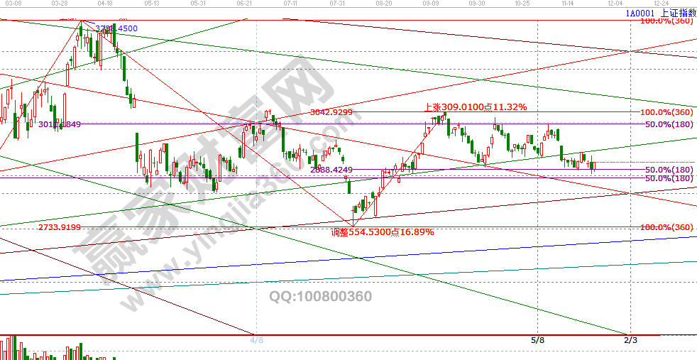 以今年指數低低點做江恩切線圖,與當前江恩箱空間分割3/8(2870點)形成共振,22號、25號低點觸及到共振位反抽,江恩箱3*2線2930點是近期一直強調的反壓位,同時弱勢橫盤導致生命線(2945點)不斷下移,均會制約反抽的空間,27號是日線下個時間窗口,遵從趨勢原則,市場未有效收復生命線前多看少動。26號盤中壓力2930點,盤中支撐2891點。操作策略,指數生命線下弱勢區域,倉位控制在3成,短線交易者遵守買在支撐賣在壓力原則。