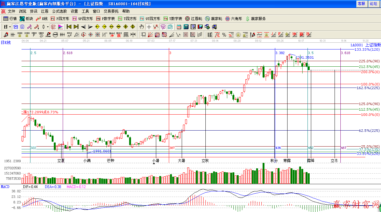 ☆依據贏家江恩系統黃金時間周期線提示:昨日22日窗口,今日霜降節氣。
