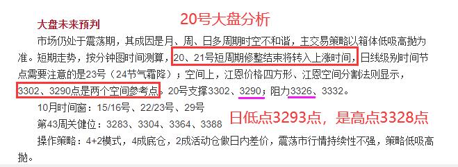 在江恩著作中,對(duì)空間速率、波動(dòng)折返測(cè)算中使用算法之一是江恩八分法。以滬指為例,贏家江恩團(tuán)隊(duì)9月份以江恩八分法測(cè)算,空間上精準(zhǔn)測(cè)算出9月11日低點(diǎn)3220點(diǎn)、9月30日低點(diǎn)3202點(diǎn)(百分比測(cè)算3204);其中9月高點(diǎn)3350,以及今日支撐3290(低點(diǎn)3293),壓力3326(高點(diǎn)3328)的計(jì)算是運(yùn)用江恩價(jià)格四方形,相對(duì)比3千多點(diǎn)的指數(shù),誤差最大是3個(gè)點(diǎn),比率是0.001%,已極度靠近何時(shí)何價(jià)。9月第一波3220---3350,目前是處于9月第二波3204百分比折返的空間結(jié)構(gòu)內(nèi),目標(biāo)參考位已在10月10號(hào)贏家江恩培訓(xùn)課中進(jìn)行解讀,并且市場(chǎng)已靠近所提點(diǎn)位,相信贏家學(xué)員早已按既定策略做好了應(yīng)對(duì)。