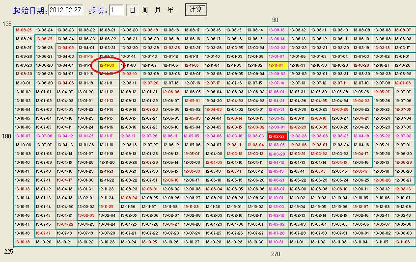 ☆依據贏家江恩系統工具——時間四方形提示:2012.2.27日作圖,12.11.09是其135度時間窗口。需關注這里變化。