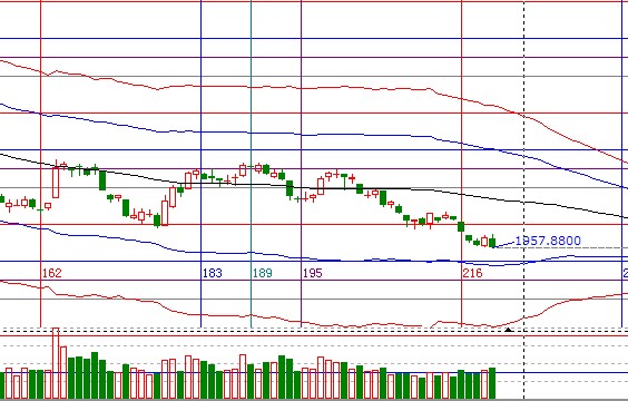A股周一陰線再創新低,盤中的反抽力度同預期基本一致反抽到30分鐘外軌附近出現回落,短期盤中震理依然不建議參與,耐心等待K線跌到極反通道弱勢外軌線附近再操作,支撐1942-1947阻力1970;