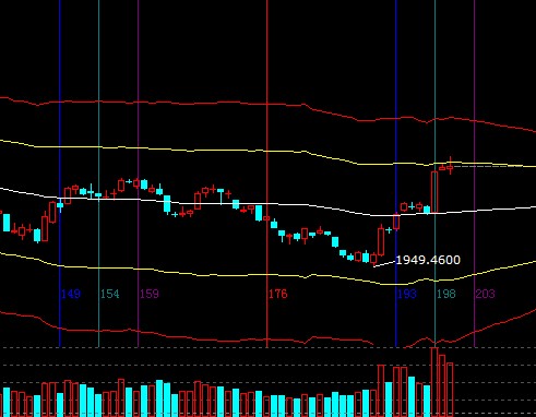 指數兩日上攻極反通道外軌線受阻回落,短周期當前還處在強勢震蕩格局,30分鐘生命線是2130此位置以下將轉入弱勢整理,依據極反通道失守一線看低一線規制外軌線短期不能突破投資者以保護收益為主,時間工具顯示20、21號為日線時間點注意盤面變化;短周期生命線支撐2135-2140,外軌線阻力2165-2174;
