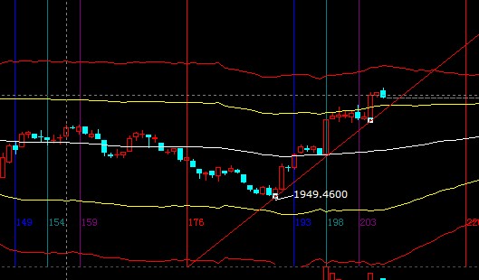 指數再創反彈來新高,短周期15、30、60分鐘外軌線2234點形成共振,依前日所述節前或最遲節后將放慢或暫停短線交易,自反彈以來的時間與空間已基本完成,投資者可落袋為安,黃色外軌線不破指數仍有震蕩上沖余力,不斷提高止贏位保護收益,破黃色外軌線則預示調整進入正式階段,短生命線支撐2200-2186,外軌線阻力2220-2230;