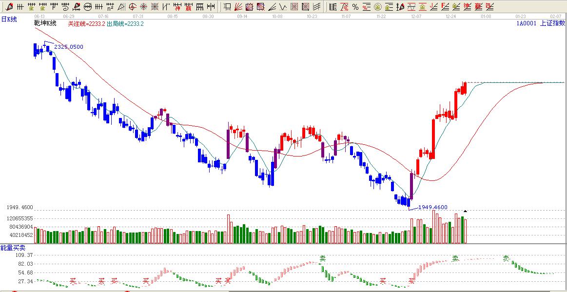 大盤高開后震蕩上行,再一次創出了本次反彈的新高,截止收盤大盤上漲27.35點漲幅1.24%收出一根光禿禿的陽線,盤面漲停家數25家,跌停一家,跌幅5個點的僅一家。2012.12.31日就是本年度最后一個交易日了,馬上即將踏入2013年,贏家江恩感謝廣大投資者對贏家支持,提前祝大家元旦快樂。
