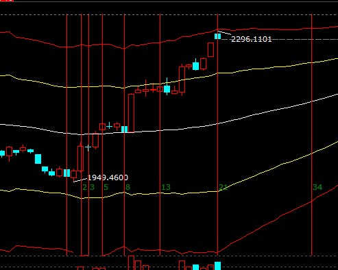 指數4號大幅高開觸及極反通道紅色外軌后震蕩回補缺口,自1949點算起費氏時間21天創出2296點新高,短周期圍繞黃色外軌線震蕩,參考歷史數據得出紅色外軌線歷史觸碰次數較少,每次運行至此都會有調整,投資者結合極反通道各周期配合來制定計劃,短生命線支撐2245-2255,外軌線阻力2288-2294;