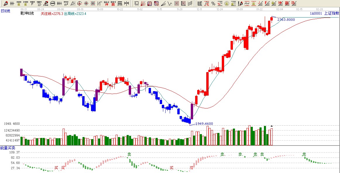 ★依據贏家乾坤K線提示:大盤在紅色區間看多做多。