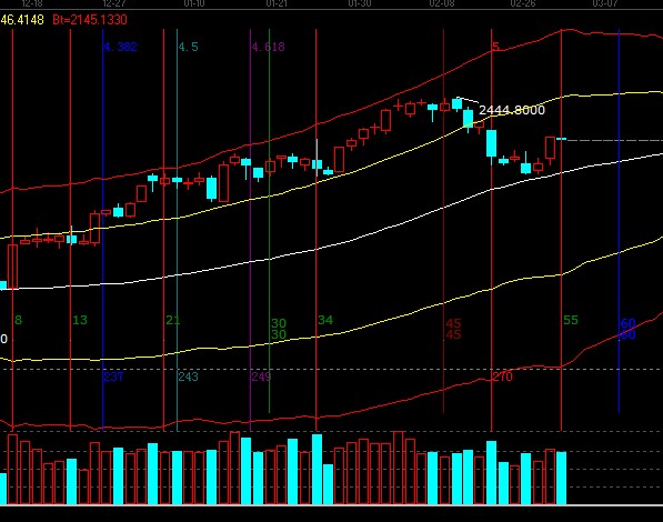 指數短周期K線生命線以上懸空位置,外軌線受阻震蕩盤中注意保護近期補倉收益,本周時間窗8號,策略以在延續沖高動作中將近兩天補的倉位高拋降低成本,短線波段結合操作,短期支撐2345-2355,阻力2378-2385;