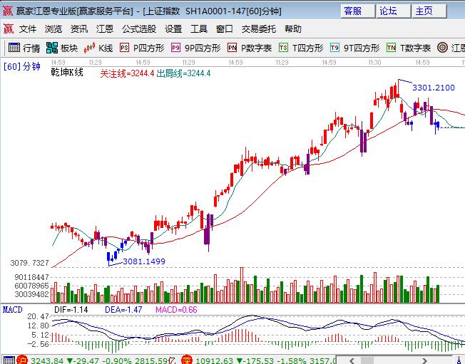 依據贏家江恩系統分析:上周五大盤低開回補缺口后一路震蕩下跌,攪局者石化雙雄開盤即大漲盤中一度沖擊漲停,給種一種大盤股輪漲結束的信號,深成指和中小創跌幅在1%以上,板塊除石油外普跌,券商領跌權重;題材無表現,次新、高送轉、稀土等領跌,個股下跌居多成交量略微放大。技術方面,日線失守股票分析軟件江恩百分比45度3271點后回踩0度3234點,下方是315度3197點。極反通道日線外軌線和江恩百分比0度是同一位置,引線跌破波段上回調目標是日線生命線3170附近,操作上保持謹慎操作,我們11月23號減的波段倉籌碼等待回補信號的出現,短線減少操作頻率,3211、3191為日內支撐,3255、3265為日內阻力,僅供參考,不構成任何投資建議。