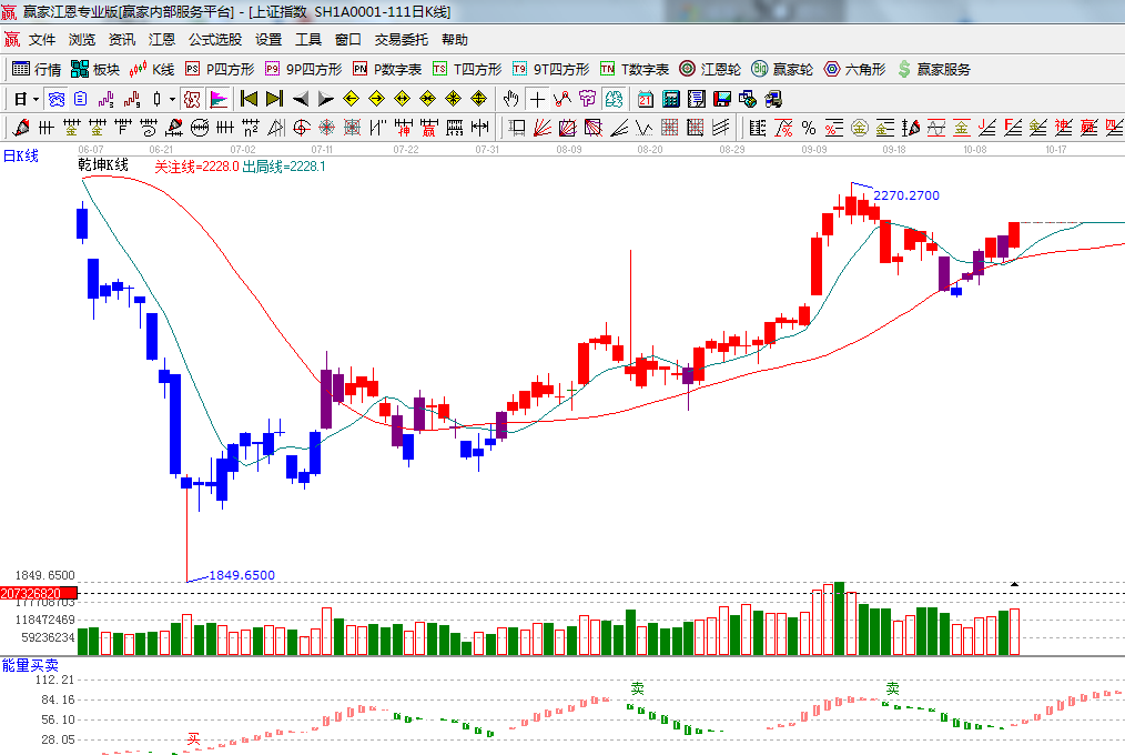 ☆依據贏家江恩系統波段百分比延伸提示:240-270度位置是2232-2255;