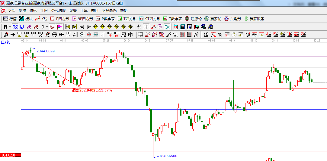 咨詢:13333833889指數(shù)延續(xù)下跌趨勢以小陰線報收,綜合當前各方面因素可得出預判市場的調整將是以緩跌開展,短周期15分鐘再下探將會形成背離,仍以盤中反抽方式修復指標,長周期周線判斷生命線位置是2150附近,這區(qū)域也是日線生命線的位置,政策方面十八屆三中全會將于下個月上旬召開,一些政策支持將帶動板塊的輪翻上攻熱點不會缺失;時間方面注意下周三時間窗口與極反通道的關系;