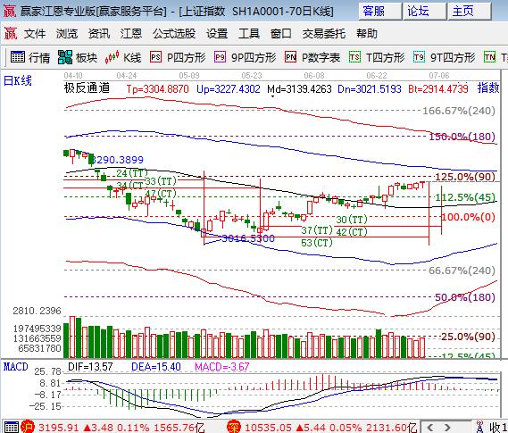 大盤周一低開震蕩微漲,創業板創了近期收盤新高大漲1%,市場風格出現轉換,傳統白馬股向科技類成長股轉換及高位股向低位股轉換。板塊方面,鋼鐵、造紙、建材和煤炭漲幅居前,釀酒、家電和保險則領跌,權重僅石油小漲;題材方面,中報預增概念領漲,人工智能、次新和鋰電局部表現,蘋果和粵港澳走勢較弱,個股上漲居多成交量放大。技術方面,日線安預期逐漸向極反通道外軌線3225靠攏,短周期15、30、60外軌線同時指向該區域,策略上漲幅過大的個股應適當減倉,倉位調配到有業績支撐低價股上面,時間周期方面,上周五分析4號至6號是分鐘圖時間點,操作節奏上適當放慢,記住抄底早一步不如晚一步,逃頂晚一步不如早一步,操作策略保持短線、波段結合不變,倉位保持在5-7成,3182、3172為日內支撐,3209、3218為日內阻力,僅供參考,不構成任何投資建議。