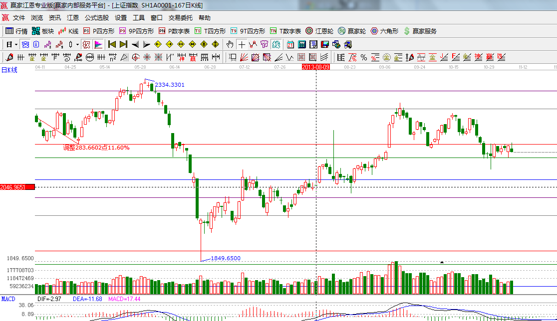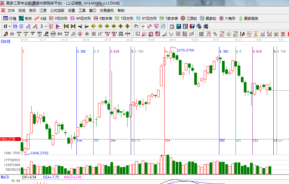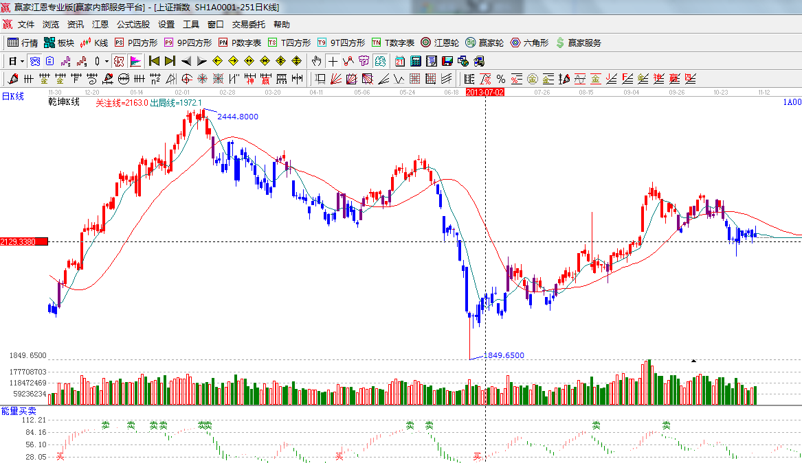 ☆依據贏家江恩系統能量買賣提示:多空轉換節點位置,等待信號的確認;
