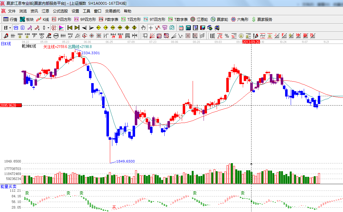 ★依據(jù)贏家江恩系統(tǒng)能量買賣提示:紅色柱子出現(xiàn),多方占據(jù)主動權(quán)看多;