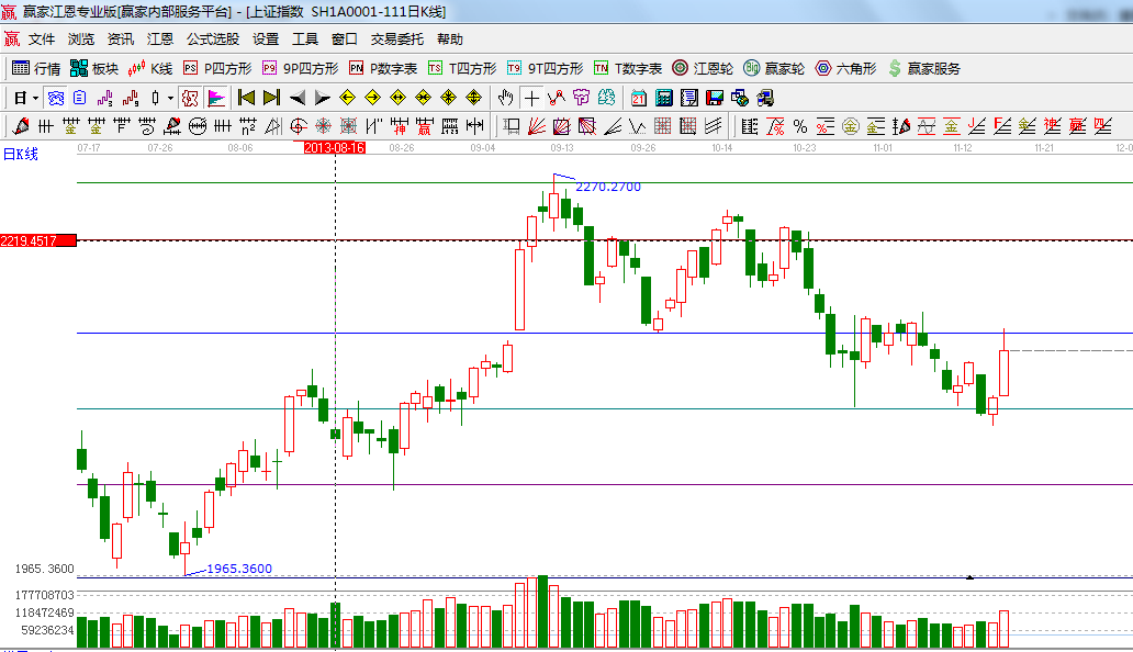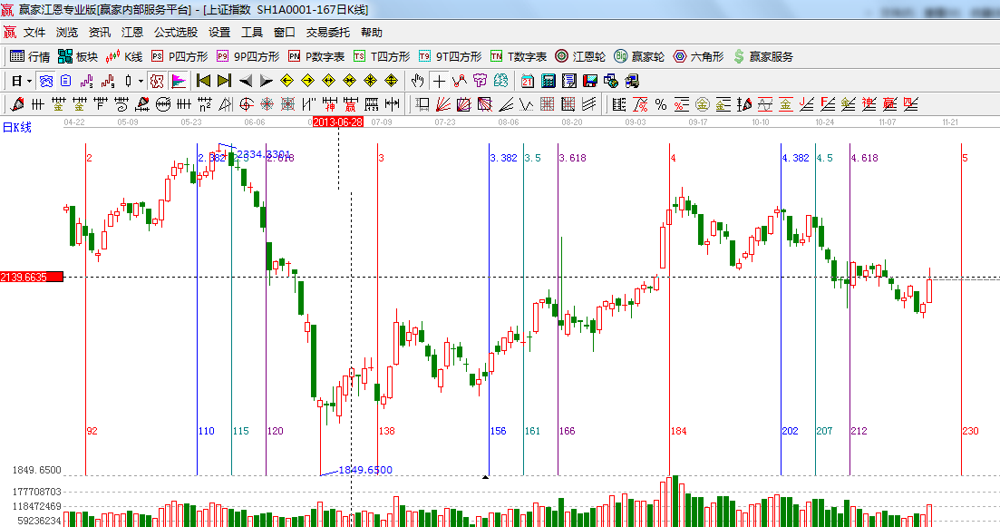 ★依據(jù)贏家江恩系統(tǒng)波段百分比延伸提示:黃金分割價格圖0.382位置是2149點,0.5位置是2090;