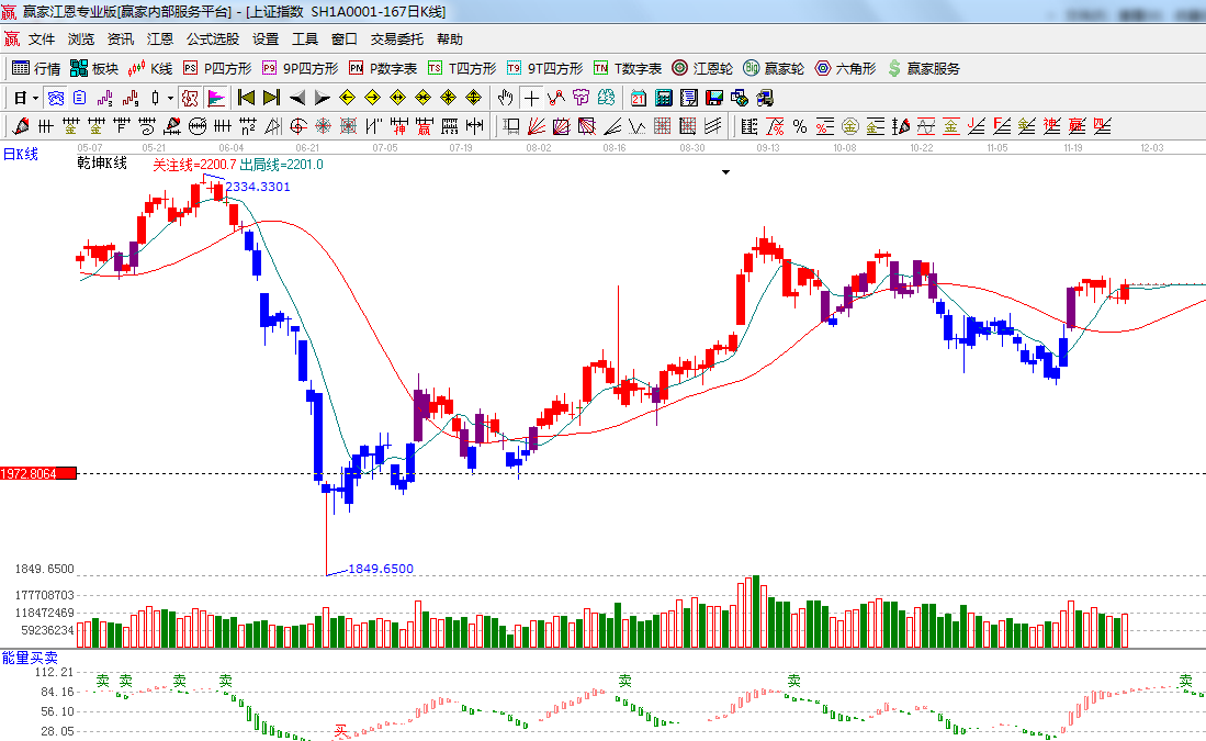 ★依據贏家江恩系統能量買賣提示:多方量能紅色柱子有所縮短,注意觀察盤中量能變化;