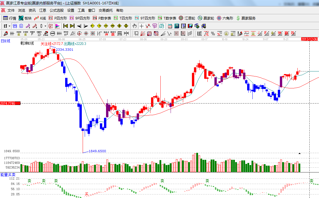 咨詢:13333833889適逢年底各大券商、國(guó)際投行開始對(duì)滬深兩市2014年的行情觀點(diǎn)展開論述,普遍看好的未來一年的行情發(fā)展,我們?cè)?、7月份的分析中提過此輪行情將是在資金推動(dòng)性的結(jié)構(gòu)性行情,最終目標(biāo)是修復(fù)3478點(diǎn)與3186點(diǎn)的下降趨勢(shì)線,如安此觀點(diǎn)繼續(xù)推論則明年還會(huì)有一次向下對(duì)1849點(diǎn)的確認(rèn),最終目標(biāo)未到達(dá)同時(shí)趨勢(shì)向好時(shí)則注重個(gè)股操作為主,12月3號(hào)為日線時(shí)間窗;選股思路提供兩種,基本面消息熱點(diǎn)圍繞高送轉(zhuǎn)、事件推動(dòng)性概念為主,技術(shù)面以贏家戰(zhàn)法提供的短線、波段選股為主,同時(shí)中小盤類長(zhǎng)期橫盤的個(gè)股放量突破的則可重點(diǎn)觀察,通過技術(shù)手法尋找交易性機(jī)會(huì);