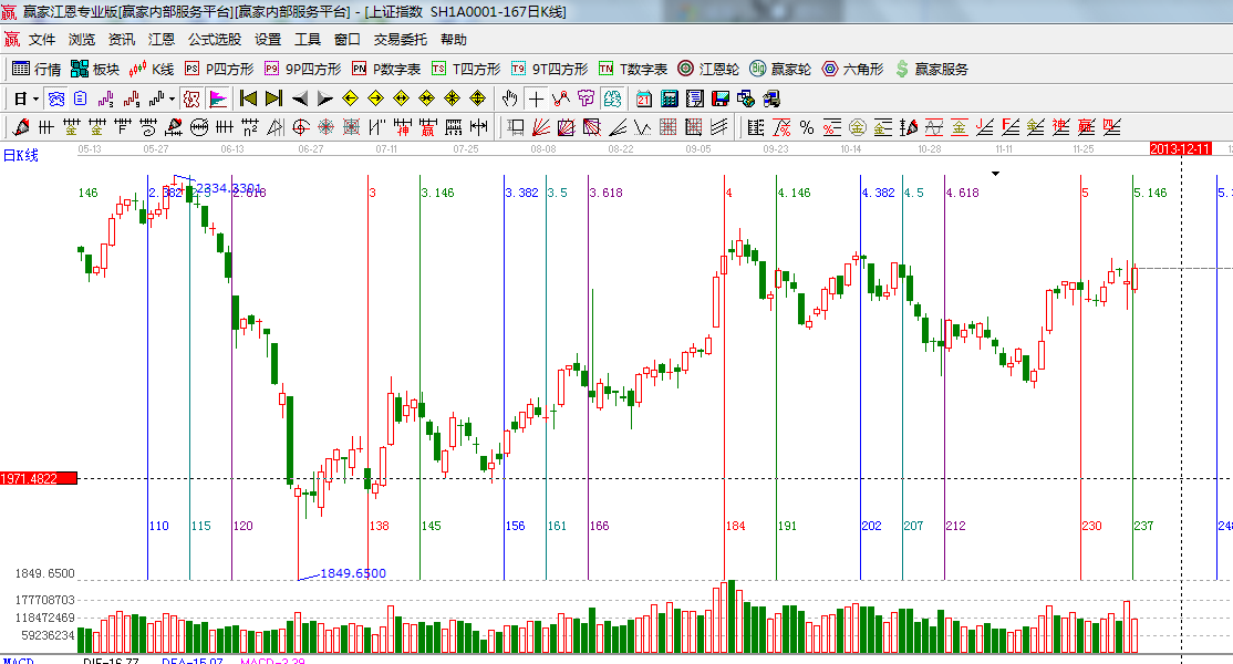 ☆依據贏家江恩系統(tǒng)波段百分比延伸提示:2444與1849點做黃金分割價格圖,0.382位置是2217點,下方支撐為0.5位置2150,上方拋壓在前期頭部2265附近;