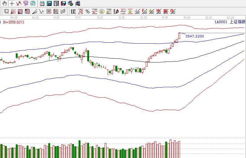 江恩看盤綜述:依據贏家江恩技術工具分析得出:周二,滬指在極反通道藍色線之上強勢區域運行,在金融地產持續推動下再創新高,其背后邏輯依然是業績以及低估值標的,元旦節后的這波反彈確實大大超出預期,短期經過連續的上攻后,需要重點關注周線極反通道藍色線3573的位置,中期趨勢繼續看好。短期謹防短期過快上行所迎來的整理。操作上,繼續關注業績以及低估值標的。另外,短線可適當關注部分低位創藍籌的機會。