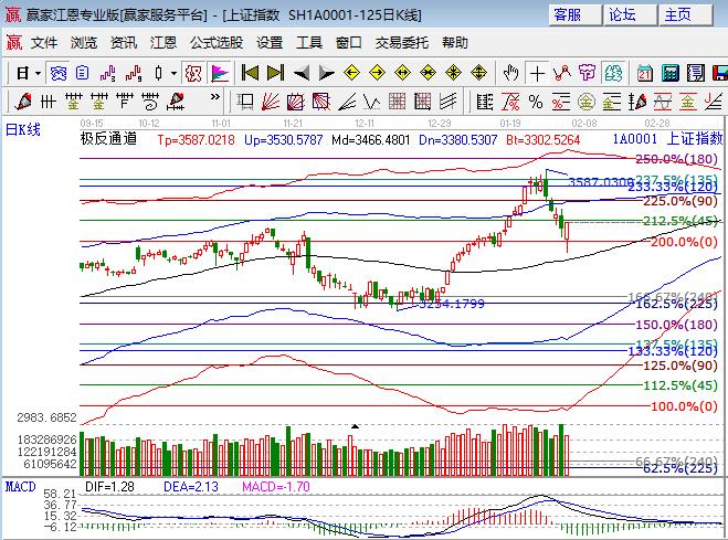 上周五大盤大幅低開下探一度跌破3400點后展開回抽,尾盤在石油帶動下翻紅,深市幾大指數全線小漲。板塊方面,周期股煤炭、鋼鐵、有色、石油、建材等板塊領漲,環保、釀酒等領跌,題材無明顯表現,次新、海南本地、高送轉和ST等領跌,個股下跌居多,跌停板多達60家,成交量較前日萎縮。技術方面,滬指日線最低基本探至極反通道生命線位置,K線懸空可上可下位置,江恩百分比2倍零度位置3420點與生命線構造支撐區間,45度(3470點)與外軌線位置(3510點)構成阻力區間,預計節前滬指將在此區間內震蕩;創業板下挫再度試探趨勢線位置后反抽,前期低點1641點附近會有反復;上證50主線品種強勢,此指數調整空間有限。市場正在構造中期箱體,操作上不追高,從銀行、地產、化工、周期股輪換中尋找低吸機會。倉位中長線4成倉持股不動,3420、3430為日內支撐,3470、3480為日內壓力。僅供參考,不構成任何投資建議。
