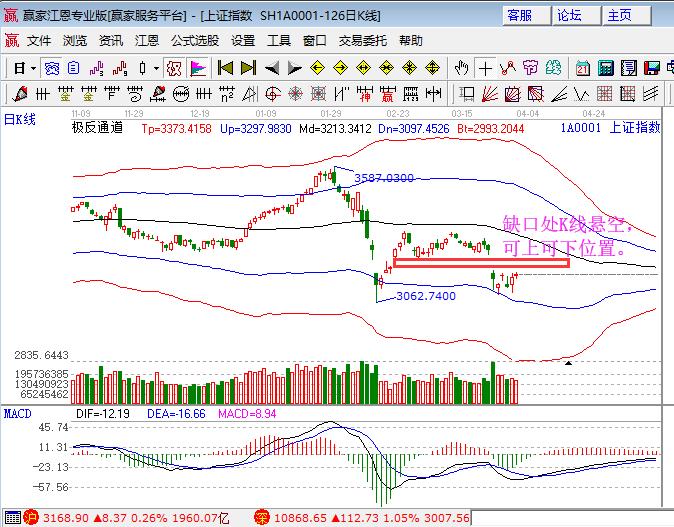 ③創業板突破短期趨勢線1860,日線外軌線1930附近會有震蕩,震蕩時各項指標,如均線、量能配合,繼續上推至紅外軌線時為風險區,外軌線處震蕩應多一點持股耐心。