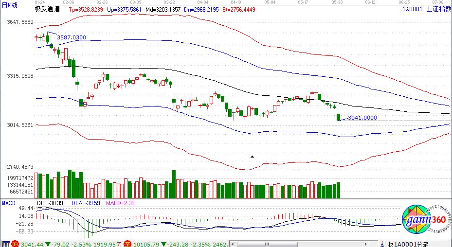 滬指跌2.53%,報收3041點;深成指收跌2.35%,報收10105點;創業板跌2.67%,報收1726點。從盤面上看,白酒、黃金、農業場等少數板塊上漲,次新股、通信設備、5G、儀表儀器、鈦白粉、汽車零部件、高送轉等板塊跌幅居前。全天,滬股通凈流出2.9億元,深股通凈流入17億元。