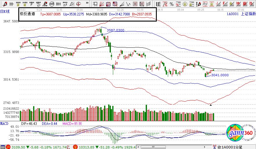 【贏家江恩點評:極反通道工具可幫助用戶解決大盤或個股趨勢判斷、價格買賣點,在日內(nèi)差價高拋低吸方面更能提示其優(yōu)勢。】