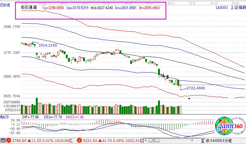 滬指漲0.41%,報(bào)2786.89點(diǎn);深成指漲0.45%,報(bào)9221.54點(diǎn);創(chuàng)業(yè)板指漲1.16%,報(bào)1607.12點(diǎn)。從盤(pán)面上看,軍工、國(guó)產(chǎn)軟件、集成電路、芯片、半導(dǎo)體、5G等板塊漲幅居前;白酒、機(jī)場(chǎng)航運(yùn)、超級(jí)品牌、飲料制造、汽車整車、黃金、豬肉等板塊跌幅居前。滬股通凈流入17億,深股通凈流出12億。相應(yīng)的極反通道指標(biāo)的支撐壓力提示,如下圖所示:
