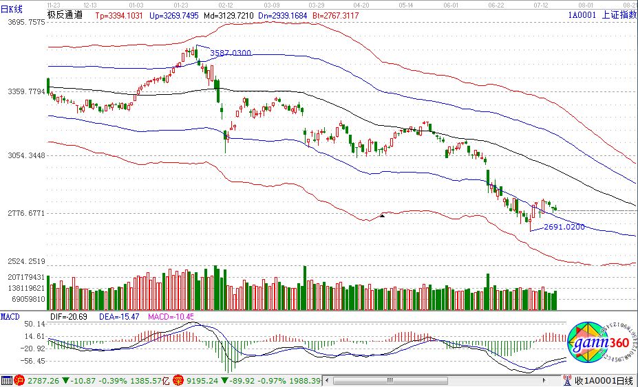 滬指跌0.39%,報收2787點;深成指跌0.97%,報收9195點;創(chuàng)業(yè)板跌0.85%,報收1607點。從板塊漲幅上看,啤酒、旅游、紡織、電力改革、在線旅游、半導(dǎo)體、PCB概念等漲幅居前;通信設(shè)備、鈦白粉、高送轉(zhuǎn)、無線充電、芯片、海南、知識產(chǎn)權(quán)保護等板塊跌幅居前。滬股通凈流入1.2億,深股通凈流出1億。相應(yīng)的極反通道指標(biāo)的支撐壓力提示,如下圖所示: