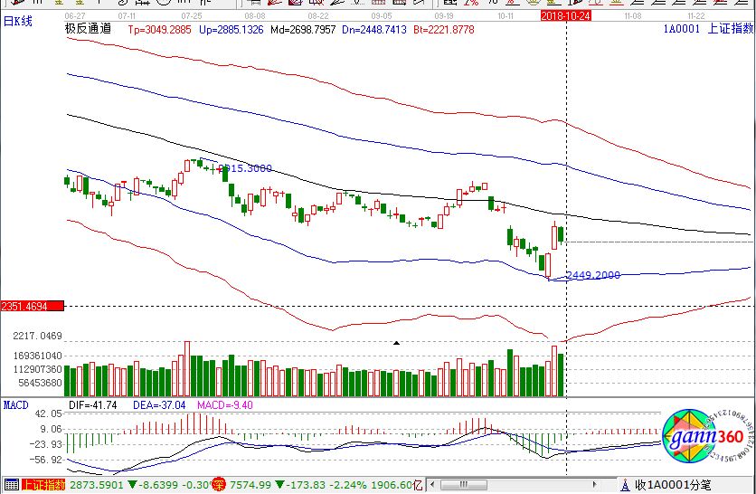 滬指跌2.26%,報收2594點;深成指跌2.24%,報收7574點;創(chuàng)業(yè)板跌1.74%,報收1292點。從盤面上看,ST板塊、黃金、證券、海南、自由貿易港等板塊領漲;白酒、分散染料、國產軟件、高送轉、機場航運、半導體、粵港澳大灣區(qū)等板塊領跌。滬股通凈流入3億,深股通凈流出5億。相應的極反通道指標的支撐壓力提示,如下圖所示: