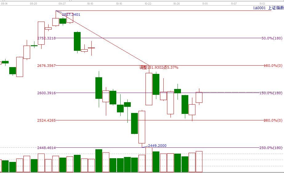 通過贏家學院的江恩理論系統趨勢、時間、價格工具綜合評判市場二星看多(五星評級標準)。大盤周三早盤高開在15分鐘生命線2570附近,用戶群按工具規則開日內差價倉,整理站穩后震蕩走高,目前短周期集體進入安全區域,指數有望震蕩走高再次反攻日線生命線2670附近,在此期間,15分鐘上軌線2633位置是一道坎,突破則可看到2670位置; 空間工具江恩價格四方形提示,1號盤中關鍵位分別是315度2579點、270度2607點、225度2635點、180度2663點。時間方面,日內時間空口是11月1號早盤第一個小時,日線時間是11月6、7號。操作策略,市場日線依然處于弱勢區域,穩健者休息,激進者整體倉位控制在3-5成,日內差價倉在2600附近出局的等待明天工具信號。