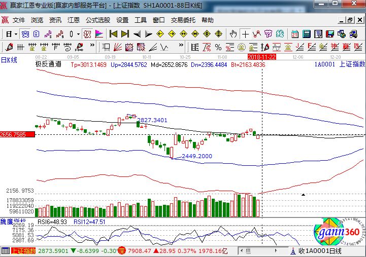 滬指漲0.21%,報收2651點;深成指漲0.37%,報收7908點;創業板漲0.57%,報收1363點。從盤面上看,物流、ST板塊、生物醫藥、深圳國資改革、豬肉等板塊漲幅居前;高送轉、黃金、油改、分散染料、海工裝備、國產軟件等板塊跌幅居前。滬股通凈流入5.9億,深股通凈流入6.8億。相應的極反通道指標的支撐壓力提示,如下圖所示: