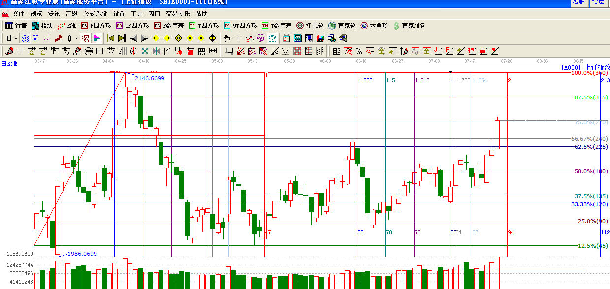 ☆依據贏家江恩系統黃金時間周期線提示:下一時間窗口為7月28日。