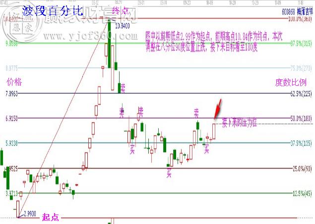 贏家江恩軟件中有系列的價格分析工具,這里推薦幾個最為常用的:江恩百分比、江恩波段百分比、波段百分比延伸線、K線價格四方形等。