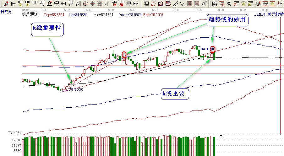 周5 的非農數據導致美元的一個下跌,在以前的帖子中提到過,美元指數短期將有一波不小的調整,現在的情況看,美元指數按照以前說的運行,趨勢線回踩后然后進行下一輪的下跌,這也再次的驗證了趨勢線的魅力,再次驗證了技術提前消息,消息只是技術的催化劑,讓行情演繹的更波瀾壯闊下罷了。